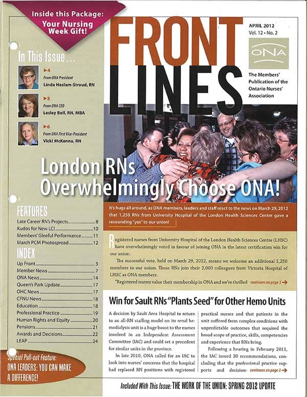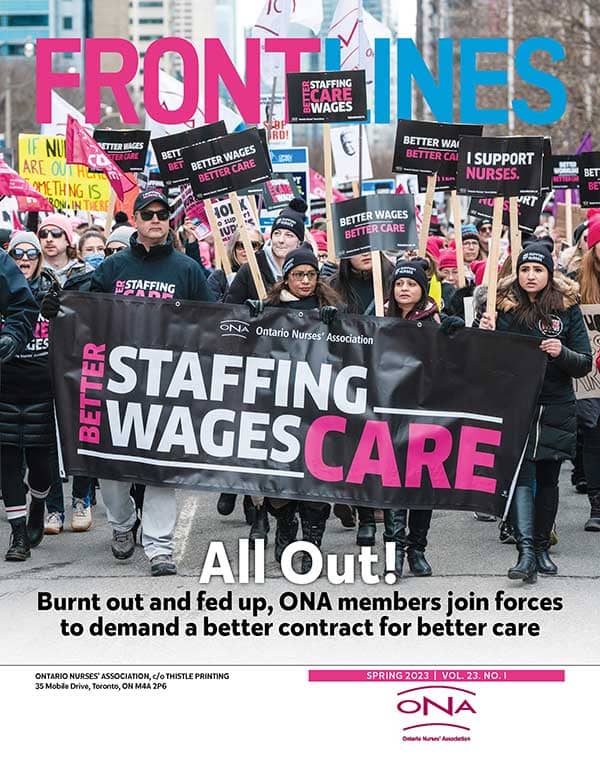 For 17 years, our award-winning Front Lines magazine told the stories of nursing and health care in Ontario and shared wins from ONA across our province. We released the final print issue of Front Lines in Fall 2024.